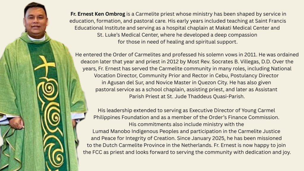 Another highlight of the celebration was the blessing of the newly elected Board members, who have stepped forward to take on the responsibility of guiding and strengthening the community’s activities. The Board serves as the governing body that ensures the smooth coordination of events, outreach programs, and spiritual gatherings to keep the community vibrant and united in faith and service. Congratulations to the community for the newly elected members of the FCC Board, namely: